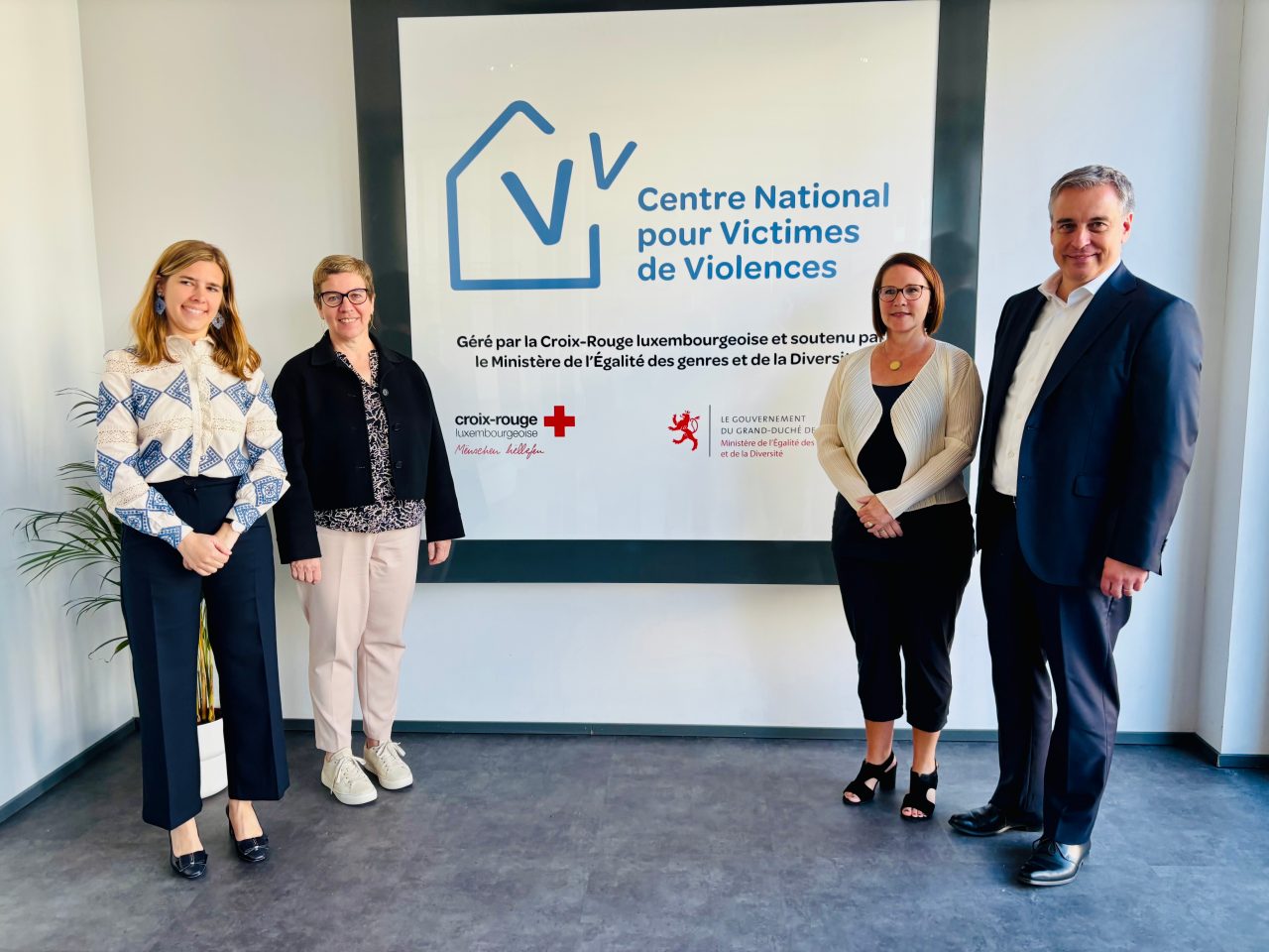 En date du 28 avril 2025, Yuriko Backes, ministre de l'Égalité des genres et de la Diversité, a inauguré le nouveau Centre national pour victimes de violences, dit le "CNVV", en présence de Claude Meisch, ministre de l'Éducation nationale, de l'Enfance et de la Jeunesse, Martine Deprez, ministre de la Santé et de la Sécurité sociale, Elisabeth Margue, ministre de la Justice, ainsi que des représentant∙e∙s de la police judiciaire et de la Croix-Rouge luxembourgeoise.